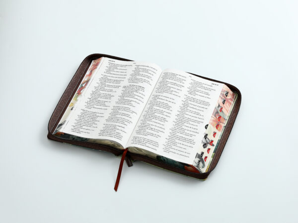Biblia con pestañas de búsqueda en una edición especialmente diseñada para facilitar la navegación rápida y eficiente entre los libros del Antiguo y Nuevo Testamento. Identifica las palabras de Jesús en rojo, Concordancia amplia de 120 páginas ,Concordancia de personajes bíblicos y Nombre personalizado en vinilo metalizado. Esta Biblia contiene adicional 32 páginas a todo color con ayudas.